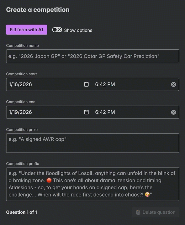 각 competition에는 제목, 설명, 시작 및 종료 날짜·시간 등 여러 입력 필드가 있으며, 이러한 정보는 자연스럽게 양식을 통해 수집됩니다.