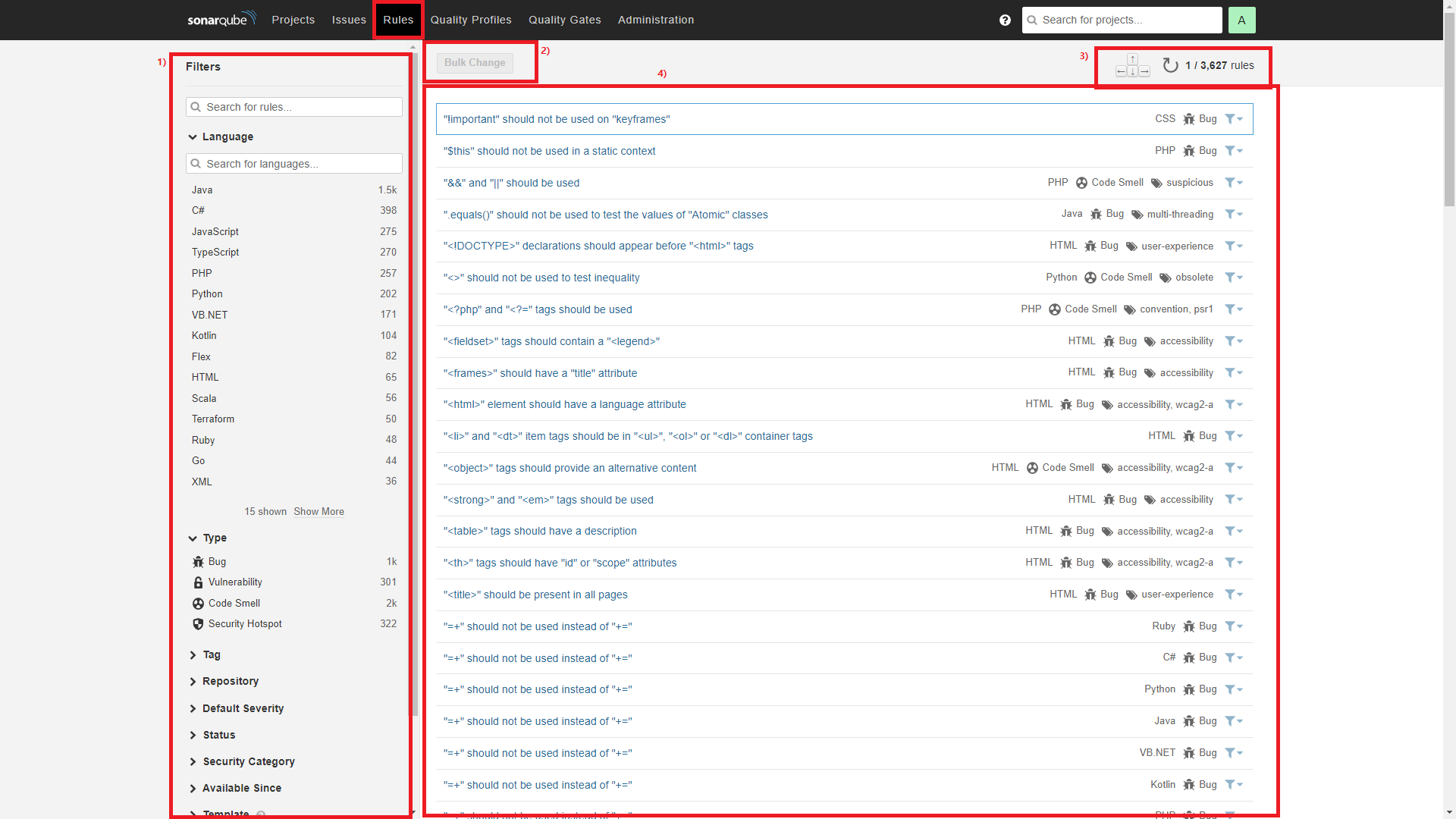 - Rule의 개발언어 / 심각도 / 태그