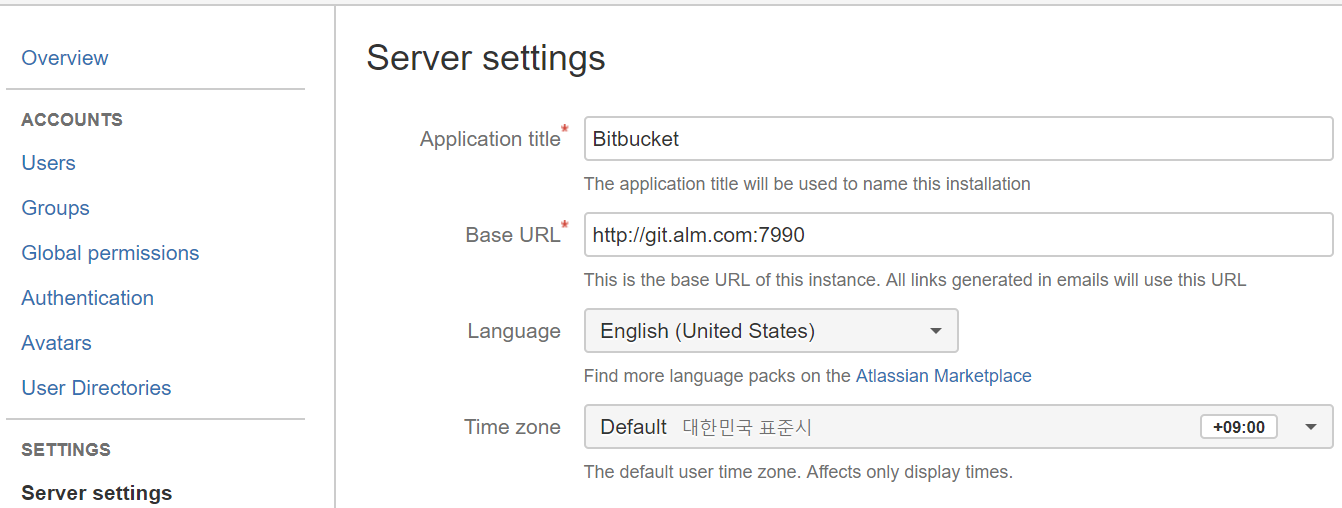 4) <Bitbucket Server Data directory>/shared/bitbucket.properties 파일 생성 및 옵션 설정