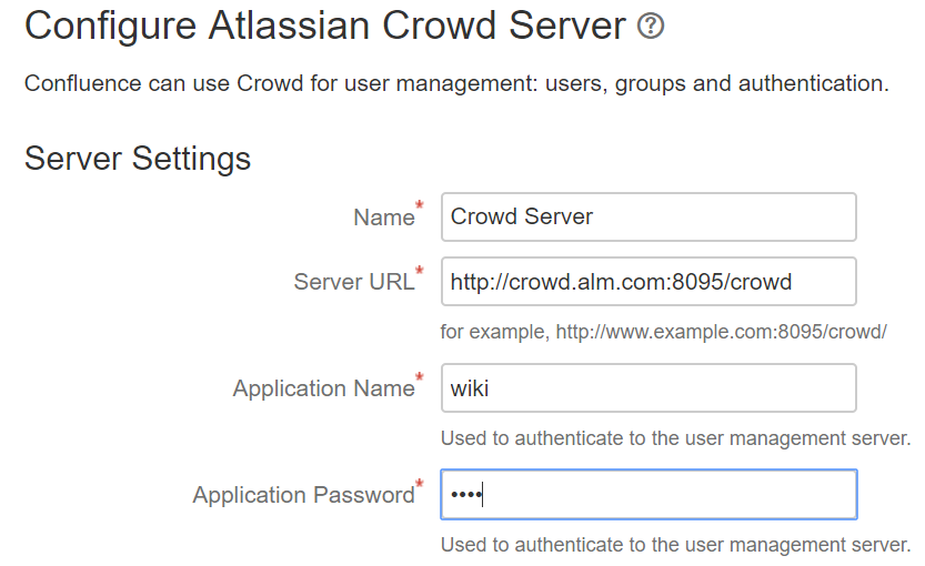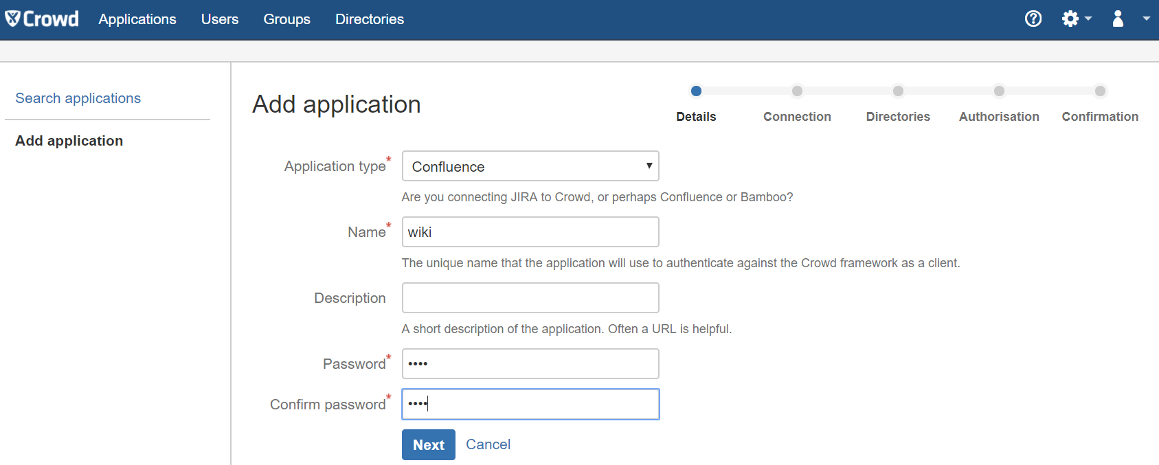 - Application Name 과 Password는 User Directory 와 crowd.properties 파일에 사용할 예정