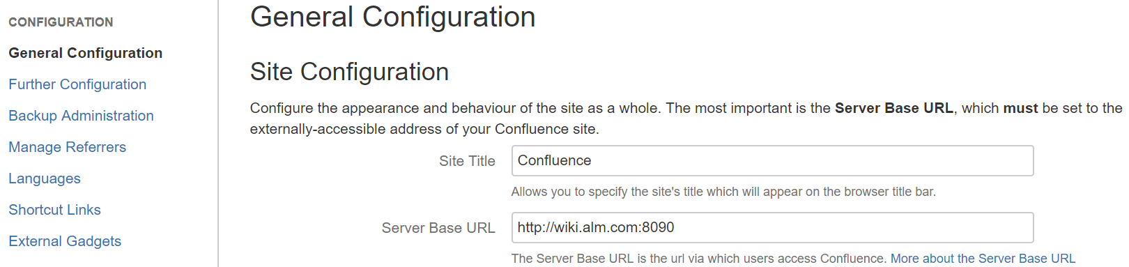 - 관리자 계정 로그인 -> 우측 상단 기어아이콘 클릭 후 General configuration -> Server Base URL 정보를 도메인으로 설정