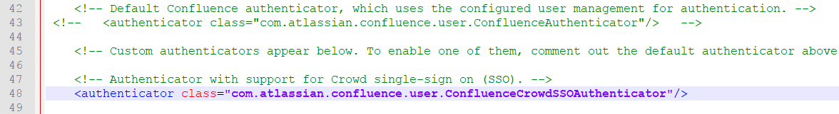 <authenticator class="com.atlassian.confluence.user.ConfluenceCrowdSSOAuthenticator"/>
