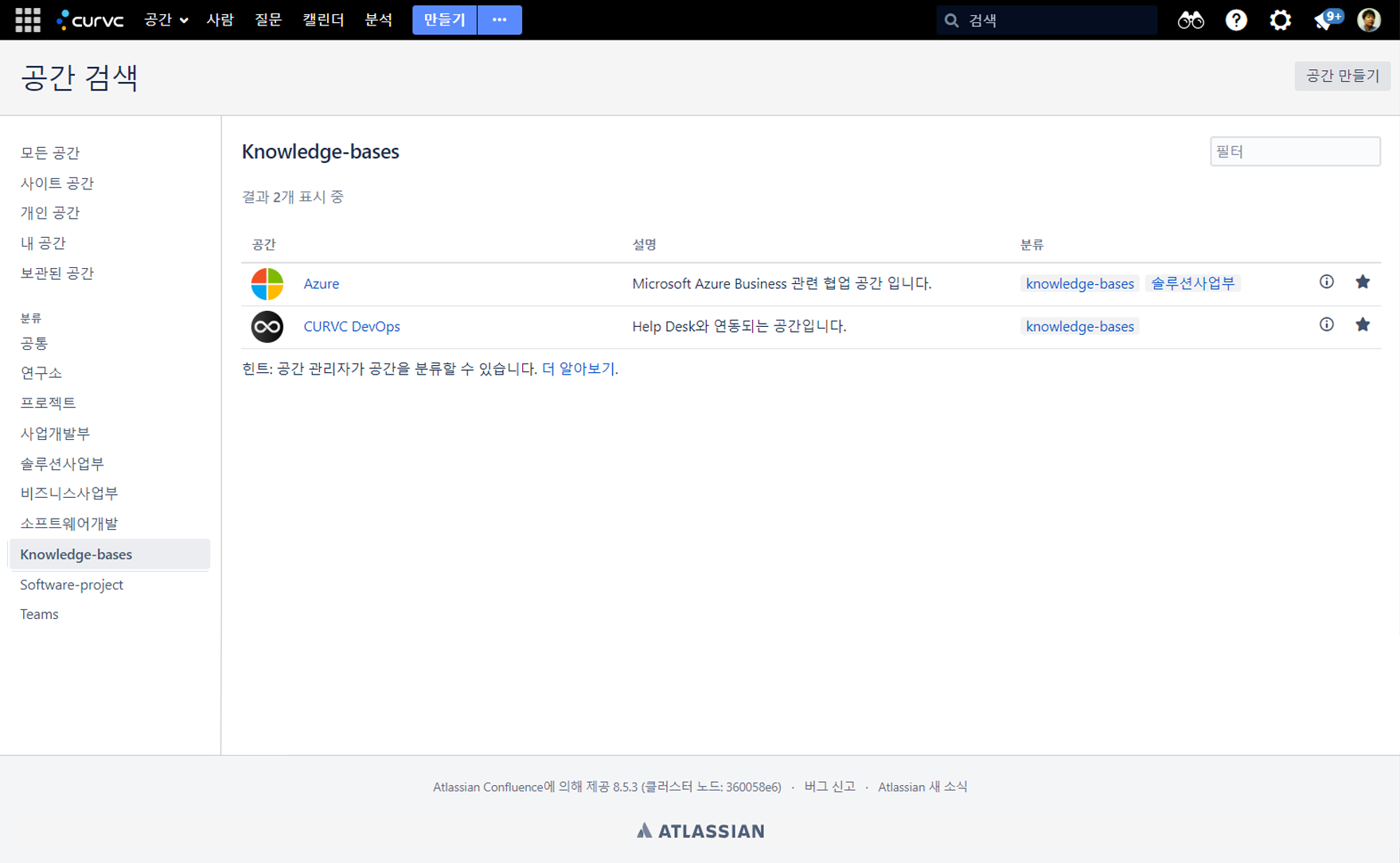 1 다음과 같이 공간 목록을 선택하면 공간 아이콘(아바타)이 변경된 것을 확인할 수 있습니다.