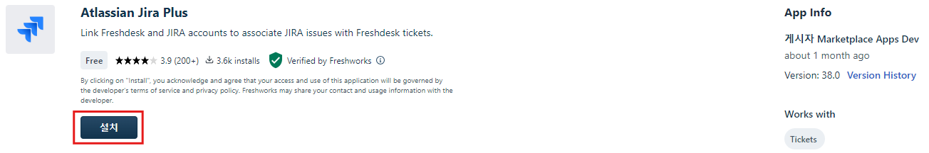 Freshdesk와 Jira를 통합하기 위해서는 마켓플레이스에서 앱 설치가 필요합니다.