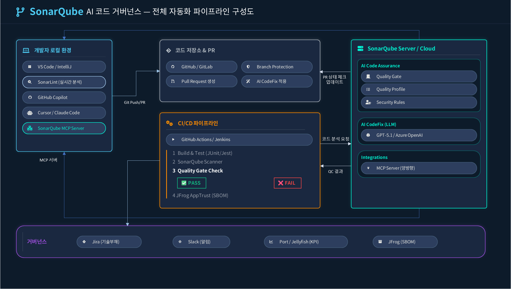 - SDLC 완전 통합 거버넌스: JFrog + Jira + Sonar 삼각 체계로 “DevGovOps” 실현