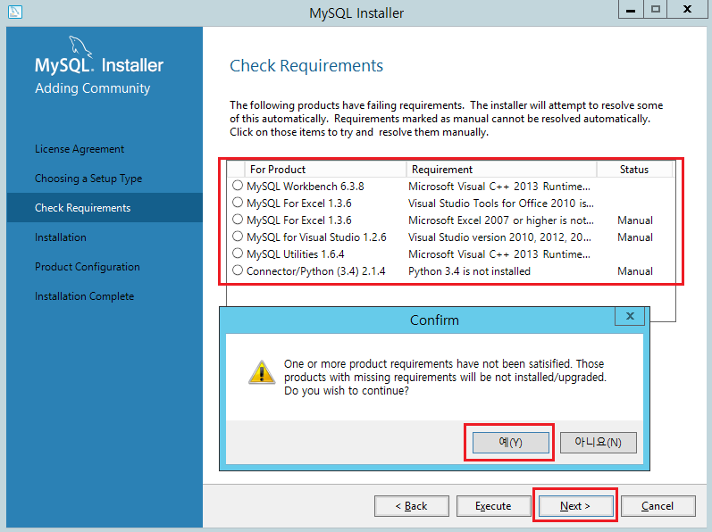 설치 되는 것이 어떤 것인지 목록이다. Excute 버튼을 클릭 한다. 설치가 끝나면 Next 버튼을 클릭 한다.