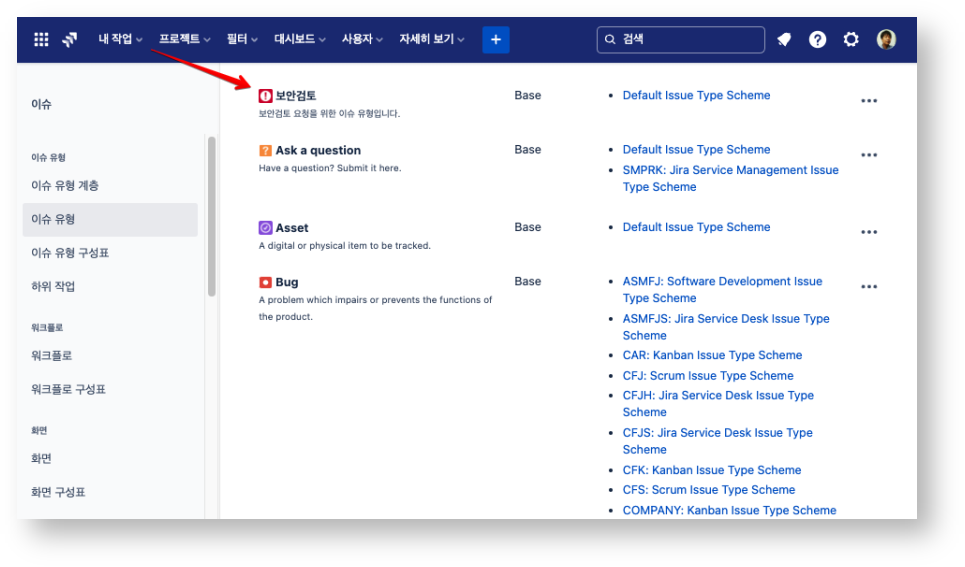 3 상위에서 생성된 이슈 유형에서 편집 버튼을 클릭합니다.